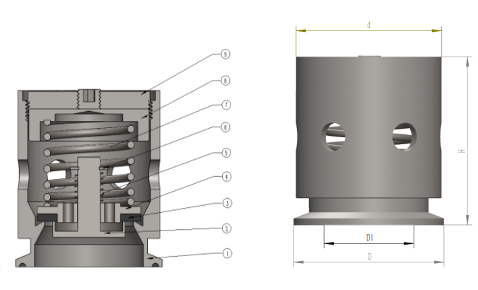 呼吸閥具備兩種功能,當(dāng)壓力高于設(shè)定壓力(標(biāo)準(zhǔn)1BAR)時可以排氣,反之關(guān)閉,內(nèi)部設(shè)計調(diào)節(jié)壓力功能,外設(shè)計平型蓋加螺絲微調(diào)節(jié)功能。當(dāng)管路系統(tǒng)中產(chǎn)生真空(標(biāo)準(zhǔn)-0.2BAR)時閥門自動打開,外界空氣進入容器內(nèi),防止容器吸扁。保證設(shè)備和相關(guān)儀表的保護作用,同時也可以滿足于各種生產(chǎn)工藝需求,該閥門不銹鋼材質(zhì),衛(wèi)生設(shè)計,滿足于各種食品加工,啤酒,飲料以及制藥等各種工業(yè)領(lǐng)域。